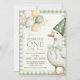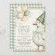Ett Fånig Goose Balloon Grönt Gingham 1:a födelsed Inbjudningar