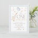 Ett fånig! | Fåniget Gästade 1:a födelsedagsinbjudan med blå gingham-bakgrund och söt gås med blå ballonger, daisy blommor och bin. Finns även i rosa, grönt och neutralt.