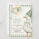 Ett Fånig Goose Grönt Gingham 1:a födelsedagen Inbjudningar