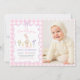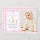 Ett Fånig Goose Rosa Gingham 1:a födelsedagsfoto Inbjudningar
