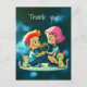 En söt och fantasifull tecknad scen där en pojke ger blommor till en flicka medan de sitter tillsammans och ler varmt. Två nyfikna tecknade katter sitter bredvid dem och tittar på det hjärtvärmande ögonblicket. Illustrationen har rena linjer, levande färger och en drömsk, lekfull atmosfär.