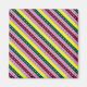 Utformningen visningar ett mönster med diagonalt rand. Dessa rand växlar mellan pulserande röd, solig gult och färsk grönt. Varje rand har samma bredd och är jämnt fördelat över bilden. Inom varje färgad rand finns det små vita prickar som skapar en fin prickad linjereffekt. På det hela taget kan denna enkla men engagerande utformning vara relevant för diskussioner om grafisk design eller som en dekorativ bakgrund.