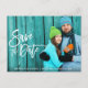 Det moderna penselskriptet sparar Förlovningen Datum - Två foto-vykort