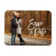 Modern penselskript Spara datum Förlovning par foto-magnet