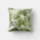 Två vyer av en dekorativ kudde med ett frodigt, tropiskt bladsmönster i olika nyanser av grönt. Designen förmedlar en fräsch och livlig atmosfär.
