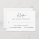 Elegant enkelt formspråk med modernt kalligrafi och typsnitt. Det finns en gästräknare för en gäst att svara. Baksidan har ett alternativ för måltidsval och formulering för födoämnesallergi.