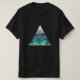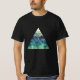 Ett geometriskt trekantigt bergslandskap med en övertoning av blått, grönt och grått-toner