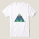 Ett geometriskt trekantigt bergslandskap med en övertoning av blått, grönt och grått-toner