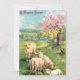 Det här hälsningskortet i Glad påsk har vackra vår lamm och kommer från en antika bild som tillhörde min underbara, underbara mormor. Dessa hälsningskort i Påsk är ett vackert sätt att fira vår återkomst med baby lamm och körsbärsbär i blommar träd på framsidan.