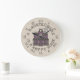 Den här klockan uttrycker den skämtsamma känslan "ett hemland är ett hem i lycklig" i ett faux kor syskonhus i mönster.