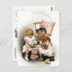 Ett intressant spel. Två små flickor med dockor spelar kort medan deras katt sitter bredvid dem och tittar på spelet med stort intresse. Harriett Bennett illustrerar den akuta vintagen.