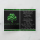 Denna eleganta irländska bröllopinbjudandesign göras i gröntar och svarten som presenterar den 3 lövklövern. Denna uppsättning inkluderar irländska bröllopinbjudningar, OSA kort, tacka dig cards, skräddarsy frimärken, bordinställningskort, t-skjortor och mycket mer.