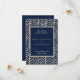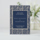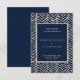 En klassisk örrbenbakgrund i marinen och taupe utgör grunden för detta traditionella men moderna och elegant bröllop räddar datumet. En marin blå infogning innehåller relevant information om anpassadet bröllop.