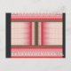 ett korsstygnsmönster med röd bakgrund vykort