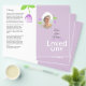 Ett nytt, rent minnesprogram eller begravningsprogram med stiliserad lavender ro-grafik och Loved One-typografi med "forevermore" i en oändlig symbol. OBS! Denna kom som ett platt lakan. Du måste fälla dem själv.