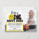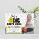 Anpassa första födelsedag inbjudan - temat "One Lycklig Boy". Använda ditt fiktiva silo-foto och lägg till de lyckligaste 11 månatliga fotona på baksidan. :