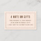 En anteckning om presentkortet för höljet som matchar vår "A Tini Bit Older"-födelsedagsfest inbjudan. Redigera dessa inhägnadskort för ett presentregister, inga gåvor, i stället för en gåva osv. Visa den samling som är länkad på den här sidan för matchande artiklar.