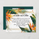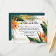 Vi presenterar Vågrät Birds of Paradise Bliss Note on Gifts Card, ett tankeväckande tillägg till ditt bröllop-skrivbord som sömlöst anpassar sig till samlingens pulserande och tropiska ambitioner. Kortets framsida har en levande bakgrund av fågel av paradisblommor, lush grönt löv och delikat rakt linjer, som skapar en harmonisk och visuellt tilltalande sensembel. En framträdande rubrik, "En anmärkning om gåvor", anger tonen och anger syftet med kortet. Dessutom kan paret med hjälp av ett textutrymme på framsidan förmedla ett personlig-meddelande eller lämna specifika uppgifter om gåvor. Vänd dig till baksidan, där en sofistikerad mörk grönt bakgrund fungerar som arbetsyta för en omhuldad par. Den här personligen gör att ett varmt och intimt inslag läggs till på kortet, vilket gör det möjligt för gästerna att ansluta sig till det blivande paret på ett mer personligt plan. Under fotot visas bröllop webbplats adress på en framträdande plats, vilket ger gästerna praktisk tillgång till ytterligare information eller presentregisteruppgifter. Sammanfattningsvis ger Vågrät Birds of Paradise Bliss Note on Gifts Card inte bara klarhet om presentaspekterna utan tillför också en liten bit av personalisering och värme genom parens bild. Den sammanhängande utformningen och de genomtänkta detaljerna gör den till en elegant och praktisk komplettering till din bröllop-station, vilket garanterar en minnesvärd och snyggt presentation för dina gäster.