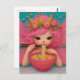 En söt älv med rosa hår och vingar med golden krona och att äta en ynkskål av fantasi-AI skapade konst