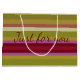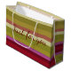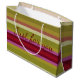 Med rand i burg, rosa och grönt, med typografi på både fram och bak