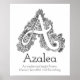 Söt A monogram bläck teckning Zen stil doodle. Art namn, och det som poster med konst är perfekt för ett flicksovrum i svart på vitt. Personligen med ditt barns egen namn från A, och namn, som betyder att ditt barns sovrum eller förskola ska röra sig i personligen, är detta exempel för namn Azalea En överflödig ljusblomma, tolerant, vacker och blomstrande. Välj en matt poster avsluta och du kan också färg in den. © Unik A monogram teckning med blommor som Azaleas, Alison, Asters, gulliga löv-bärare och olika pilar. Beskriv det ursprungliga bläck teckning och utformningen av Sarah Trett. www.sarahtrett.com för www.mylittleeden.com