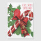 Vintagens magnetiska julhälsningskort: Mistle toe, jingle klockor och candy cane