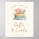 Ett nytt kapitel börjar. Styra gästerna med stil med affischen Wildflower and Books gifts and cards, ett vackert designat tecken som förenar litterär charm med romantiska blommor. Denna affisch skapar en förfinad och sammanhängande bröllopsduschestetik med handmålade akvarellillustrationer av vintageböcker och vilda blommor i mjuka rosa, blå, gröna och guld. Den elfenbensvita bakgrunden, i kombination med en skrivmaskinsfont och graciöst guldhantletterad skrift, ger en sofistikerad men ändå lekfull touch. Låt detta tecken förhöja din gåtabord, guida gästerna utan ansträngning medan din fest hålls vacker organiserad, eftersom varje kapitel i din kärlekshistoria förtjänar en perfekt början!