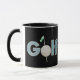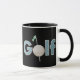 Golfspelmugg för golfälskare och sportfantaster. Golflogotypen i mjukt skuggar av blått på svart
