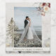 Ett par bröllop-fotomodern elegant-skript vinter vinflaska etikett