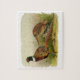 Färgad Teckning i Ring Necked Pheasant tupp tittar över hönen medan hon letar efter frön i röjningen av en gräs fylld prärie. Tupp är en regnbåge av färg som omfattar grönt, gult, orangar, blåsor, och vita. En söt Upland Game-fågel.
