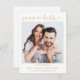 Ett foto Spara datumangivelsekortet bröllop med webbplatsinformation, guld på vitt.