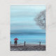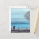 Ett par i kärlek med röda paraplyer vykort
