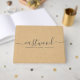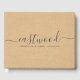 Ett trendigets moderna och elegant minimalistpars namn-monogram i vintage serif-typ, kontrasterat med ett handskrivet stil-skriptteckensnitt på en ljus persiko-kräm faux linen-effektbakgrund. Elegant bröllop gäst bok för nyfödda. Blanda vintage och modernt stilar.