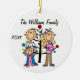En helgdag runt keramiskt keepéjullöpel har en stick figur-familj med pappa, mamma, småbarn och flicka framför ett dekorerat Julgran med områden som du kan anpassa med din familj söt och innevarande år! Den här söta helgdag prydnadsföremål gör en underbar gåva till den unga familjen för att hedra minnet av ett speciellt år!