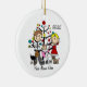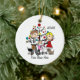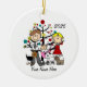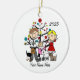En helgdag runt keramiskt i söt har ett par stick figur, baby dotter i rosa och tre hundar framför ett dekorerat Julgran med områden som du kan anpassa med din familj namn och innevarande år! Den här söta helgdag prydnadsföremål gör en underbar gåva till den unga familjen för att hedra minnet av ett speciellt år!