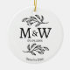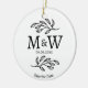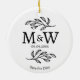 Ett par Monogram Bröllop spara datum botaniska Julgransprydnad Keramik