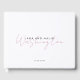 Personlig bröllop monogram gäst bok, med första namn och söt dammig rosa-manuset för det gifta paret. Du kan ändra färg och typsnitt genom att klicka på verktyg.