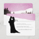 Ett par i bröllop attire står, silhuetterade, mot en snöbergsbakgrund på denna romantiska design. All text är lätt att anpassa.