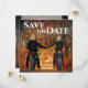 Den här unika Rädda datum-inbjudan har en vacker höstskog med en pojke och ett flickpar på motorcyklar som håller händer. Paret har blond hår. Andra hårkombinationer i färg finns tillgängliga på begäran! Perfekt för ett biker par! Anpassa enkelt detta Spara datum med all information om bröllop.