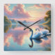 Ett par svanar glider på en serene sjö fyrkantig klocka