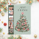Ett Retro God jul Träd-fotokort. Ett vackert Julgran vatten med stil med röda, rosa, grönt och vita. Ljusvit helgdag strung mellan prydnadsämnena. En ljus röd stjärna på toppen gör att den här vackra träd skiner. Inuti hälsning finns blanksteg för din egen text eller radera den som du vill. Matchande adressetikett är tillgänglig.