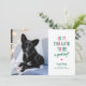Det här julkortet med hund är perfekt för ägare vars hund varit lite busig i år. Det har med den roliga frasen "Är det för sent att vara en bra pojke" och ett foto på din lilla gullis. Anpassa färgerna så att de passar din husdjursbild!