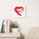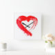 Ett rött hjärtväggslås fyrkantig klocka