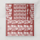 Ett rött matta med ett texturerat mönster sprids u placeringskort