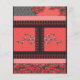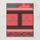 Utformningen visar en mängd mönster och formgivningar som kan användas för väv eller tapet. Här följer en detaljerad beskrivning: ・ Toppavsnitt: Innehåller en blandning av blommigt och geometriska former i svart, vitt, rött och guld färg. ・ Mitten Band: Innehåller ett rött band med tunna guld-blommönster på vardera sidan av ett centralt svart rand med prickade detaljer. ・ Grund-sektionen: Upprepar blommigtens motiv som visas ovan, men på en större , mot en bakgrund som tonar från rött till svart mot grund. Kombinationen av dessa mönster skapar en synlig utformning och elegant.