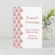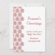 Ett vintage damaskmönster i tranbärsrött accentuerar detta julkort, som är lätt att anpassa med din egen företagsinformation. Det visas på det grundläggande papperet; jag rekommenderar dock tyngden och texturen hos linnepapper.