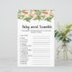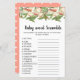 Ett sött persikotema har en söt persikokras, ett krympt ord-kort för babydusch ord på detta kort är alla relaterat till spädbarn och har förstorats. Gästerna tävlar för att se vem som kan skingra dem först! SVAR NYCKEL: 1. bilsäte, 2. mjölk 3. lekpunkt 4. nappar Den femte punkten är en kallare roterande stol. 7. Plantskola 8. baby-skärm, 9. Svälj 10. formel. 11. gummidamm 12. barnvagn. 13. bildskärm. 14. Tråd. 15. Termometer.