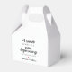 Modern och söt "Ett sött slut till en ny början"-favoritbox till paket bröllopsfavoriter för dina gäster. Utformningen har en blandning av modern och söt, handskriven typografi med ett sött, litet rött hjärta och anpassningsbara namn och datum.