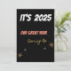 Meddelandet "IT'S 2025 ONE GREAT YEAR COMING UP" symboliserar optimism och spänning inför ett verkligt underbart år framöver. Denna design är den perfekta påminnelsen om att framtiden rymmer oändliga möjligheter och framgång.