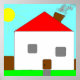 Uppskjutet hus på en sfärisk dag, Kids Art, Digital Painting